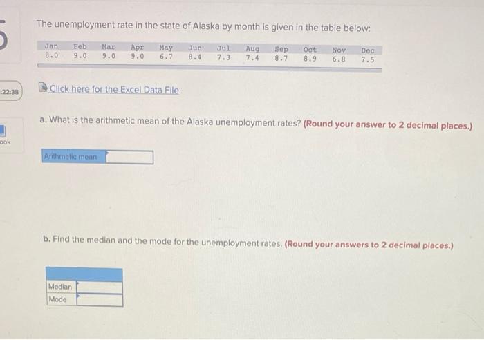 Solved The Unemployment Rate In The State Of Alaska By Month Chegg Com